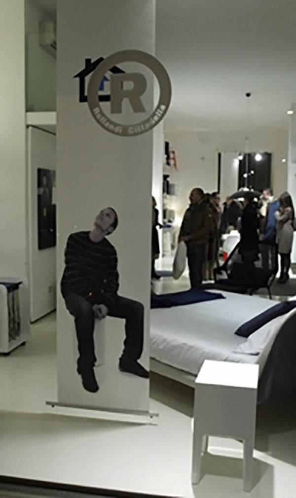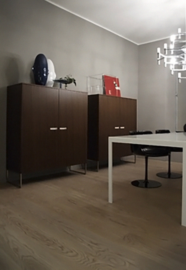 Nel nuovo spazio acquisito sopra lo showroom esistente è stato creato un vero e proprio appartamento arredato nei minimi particolari. Si accede all’appartamento da una grande scala in metallo creata per l’occasione, il percorso si snoda dalla zone ingresso alla zona living dov’è presente una zona libreria studio, un ampia zona relax con divani e postazione TV HI FI. Si passa alla zona pranzo attigua alla cucina laccata con top in pietra naturale.